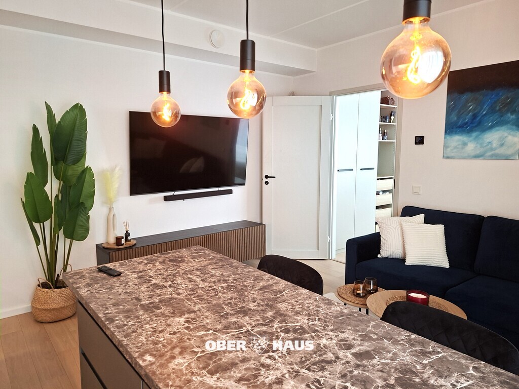 2-toaline korter paikneb kolmekorruselise kivimaja teisel korrusel, üldpind 40,2 m². Korteri aknad avanevad maja kahte külge. Korter koosneb esikust, avatud köögiga elutoast, magamistoast ja WC-ga duširuumist.