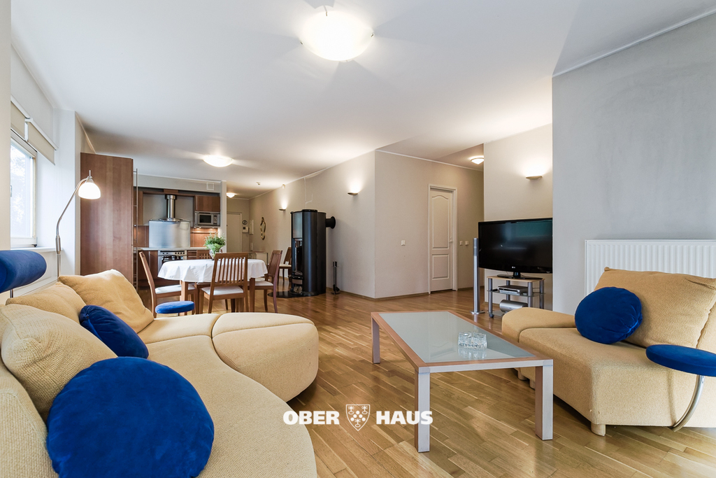 Korter on möbleeritud. Avatud köögiga kaminaga elutuba. Kvaliteetne LEICHT köögimööbel on täispuidust, ahjuga keraamilinet pliit, mikrolaineahi, kubu, külmkapp, nõudepesumasin, kõik nõud ja köögitarvikud. Teler, muusikakeskus, kodukino. Elutoast avaneb uks päikesepoolsele avarale rõdule.