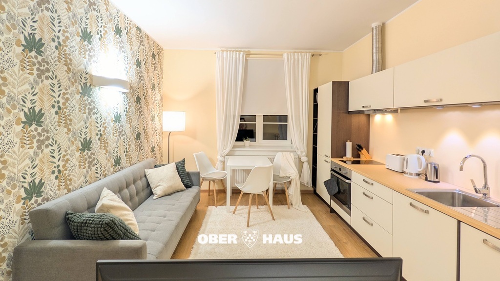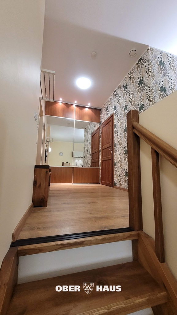 Korteri esimesel korrusel asub avatud planeeringuga elutuba koos köögiga, mis loob avara ja hubase elukeskkonna. Lisaks paikneb samal korrusel magamistuba. Korter on möbleeritud ning varustatud kogu vajaliku köögitehnikaga. Ülemist korrust valgustavad suured aknad vaatega sisehoovi.
